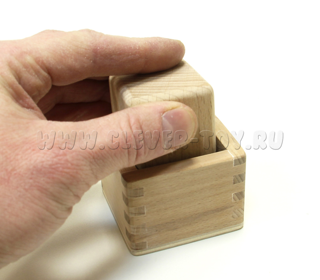 Одна из первых игрушек младенца, умеющего сидеть. Развивает моторику, координацию "глаз-рука", скоординированную работу обеими руками, мышление. Ребенку необходимо перевернуть коробочку, чтобы вынуть кубик, и сориентировать правильно углы, чтобы поместить кубик в коробочку.