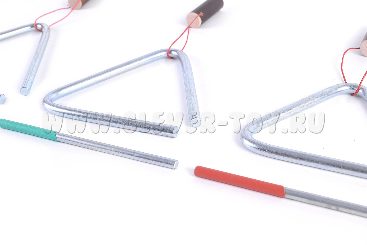 Треугольники выполнены из стали диаметром 8мм. Гальваническое покрытие не ухудшает качество звука и не разрушается при механическом воздействии.