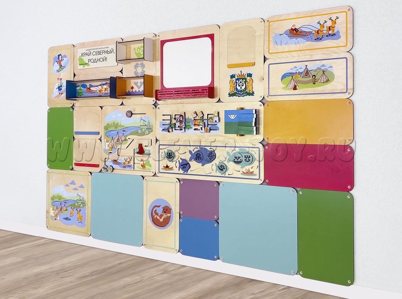 Это образовательная панель для оформления пространства детских учреждений. Состоит из четырёх модулей, которые можно комбинировать по своему усмотрению.
