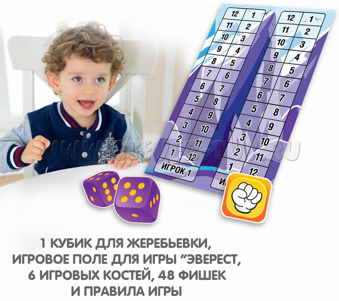 1 кубик жеребьевки права первого хода (камень - ножницы - бумага),