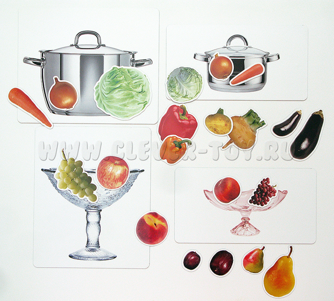 • уточнять словарный запас за счёт названий овощей и фруктов, а также слов