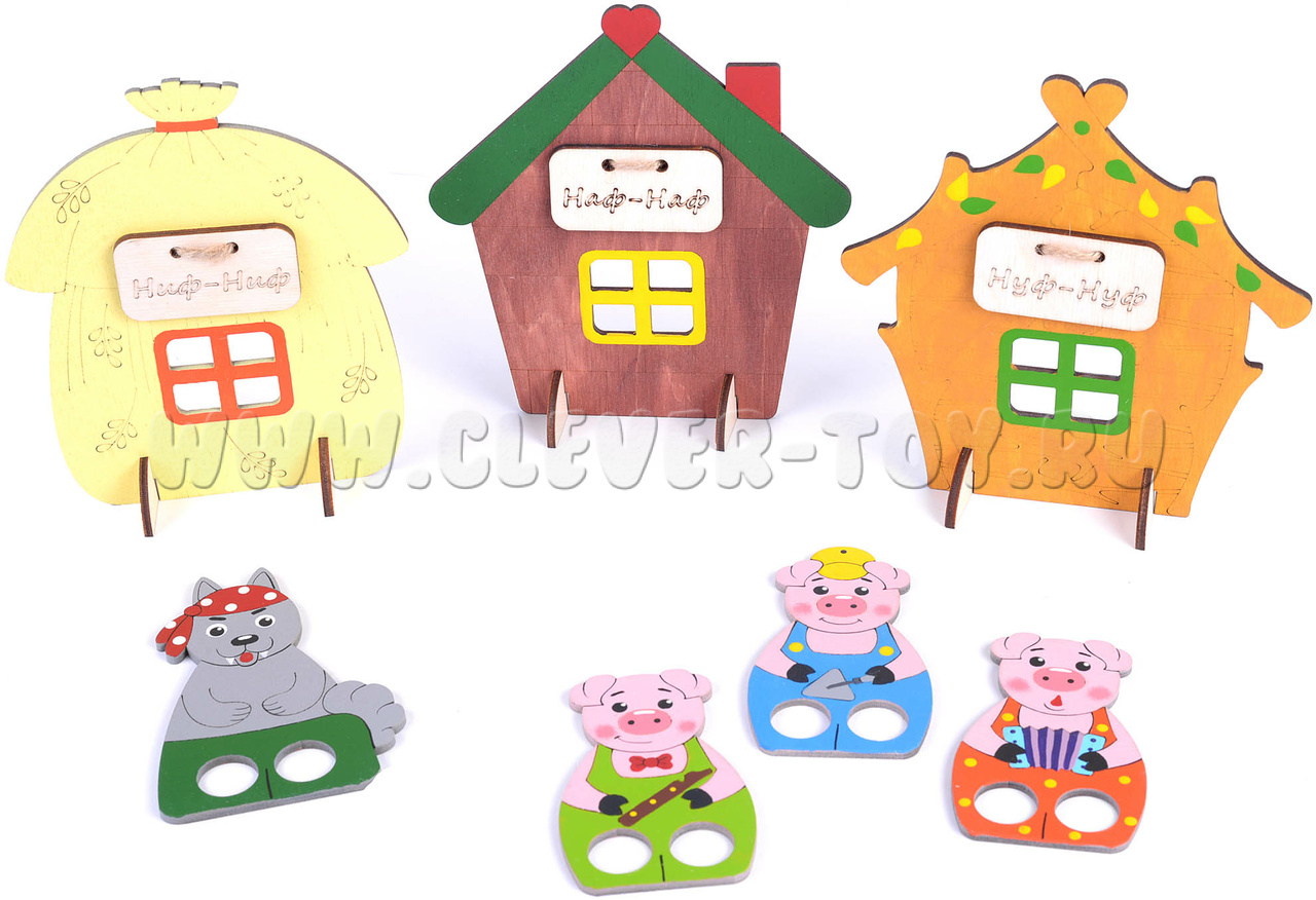 Пальчиковый набор "Три поросенка" (дерево)