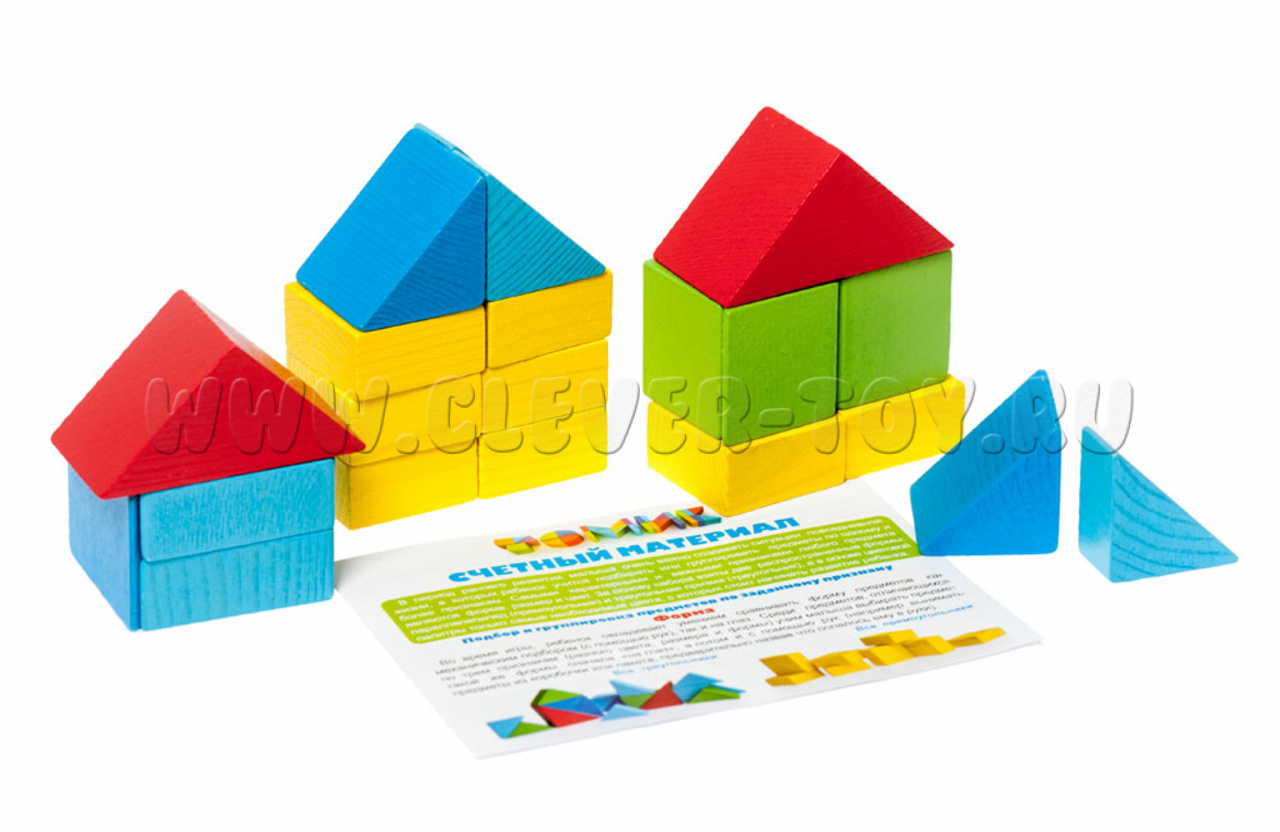 Набор деревянный "Занимательная геометрия" состоит из 26 деталей 5 цветов.