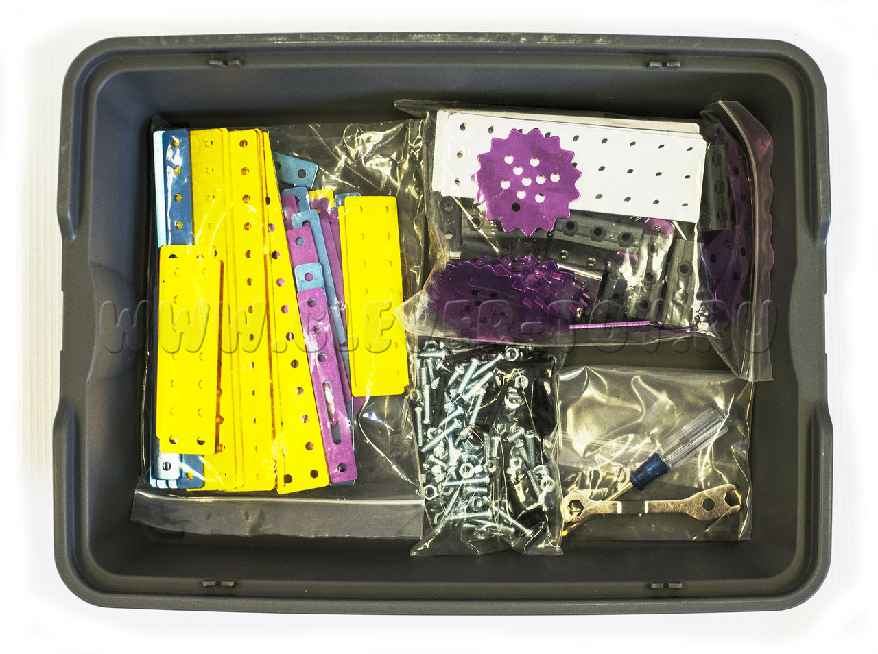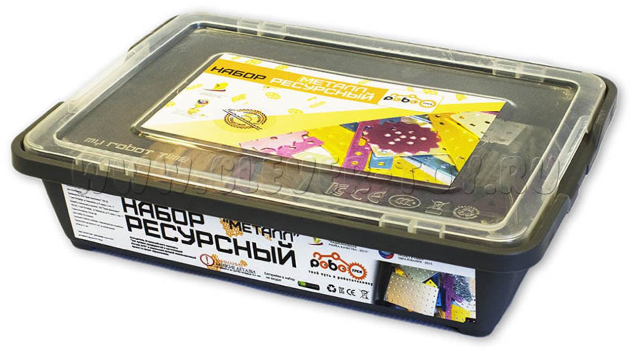 Ресурсный набор "МЕТАЛЛ" расширяет возможности основных конструкторов. В набор входят пластины, балки, уголки и шестеренки. Включает алюминиевые и стальные элементы. Детали набора можно использовать для создания более прочных конструкций.