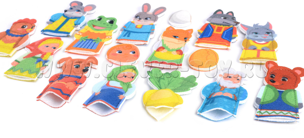 - Пальчиковые фигурки с изображением сказочных героев -16 шт. (размер от 4 до 9,5 см)