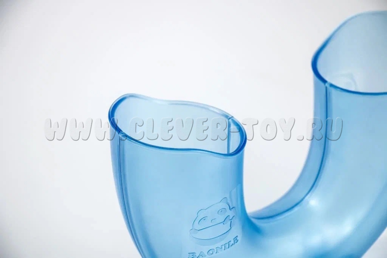 В набор входит голубая труба U-образной формы 23,5 х 8, х 17,5 см. и три шарика.