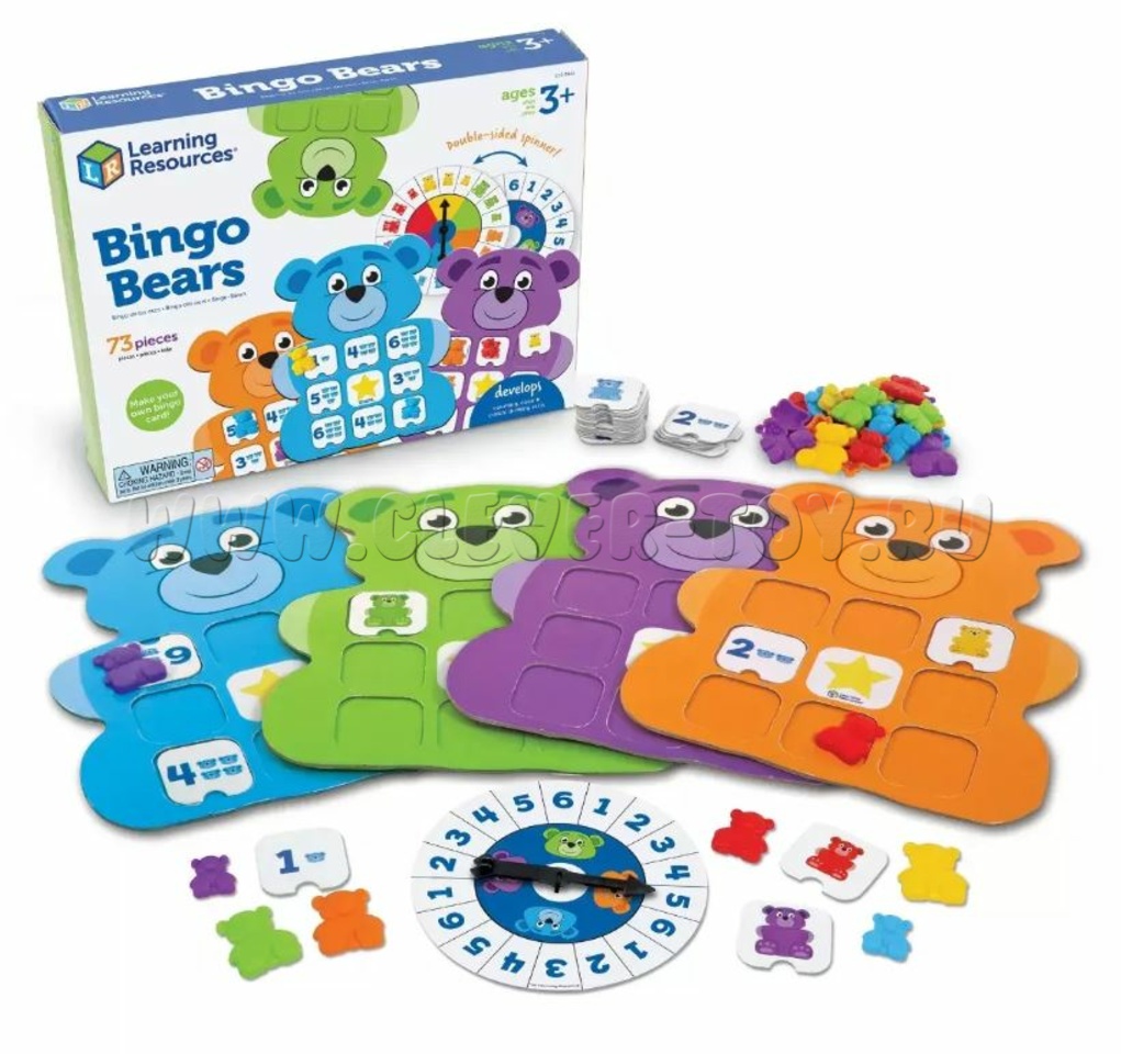 Соотносите фишки на карточках по цифрам, цветам и размерам - тот, кто закроет три плитки подряд в любом направлении и выкрикнет "Бинго!", становится победителем!