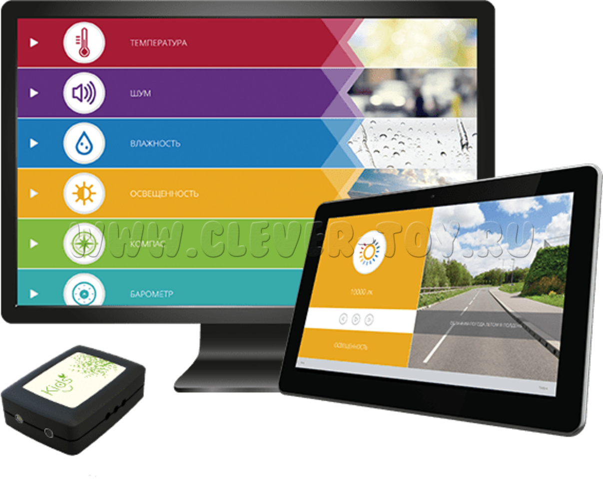 Итого в комплекте: 2 мультидатчика (с 9 встроенными датчиками) + 2 классических датчика + методическое пособие + ПО + 7 аксессуаров.