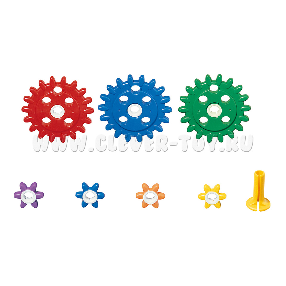 Многообразие вариантов: В набор входят шестеренки разного диаметра и количества зубьев, что дает возможность создавать разнообразные механизмы.