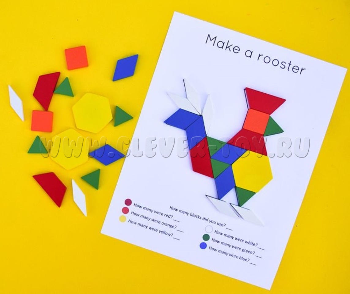 50 пластиковых плиток 6 форм и 6 цветов для решения задач, изучения симметрии, линейного измерения и измерения площади, дробей.
