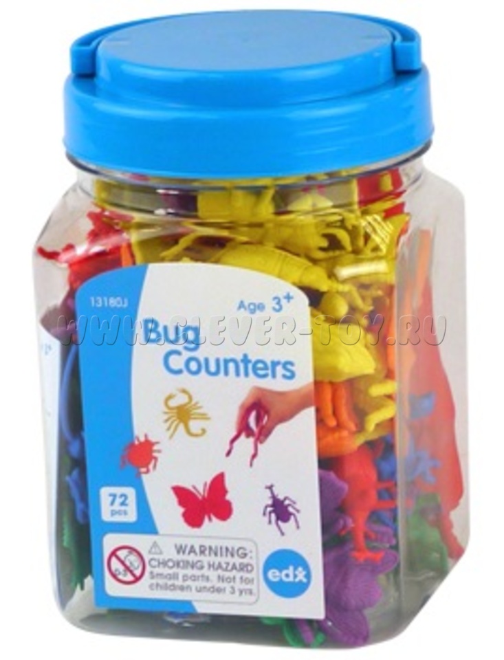 В наборе 72 фигурки насекомых, 6 ярких цветов. Фигурки представлены в 12 видах: